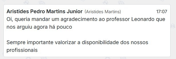 ✔ Arguições individualizadas (grupos de até 5 alunos)